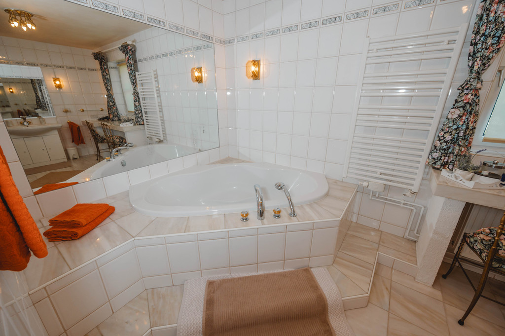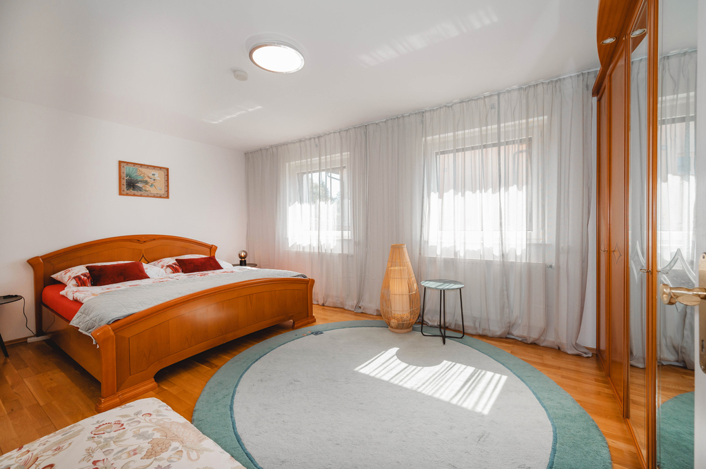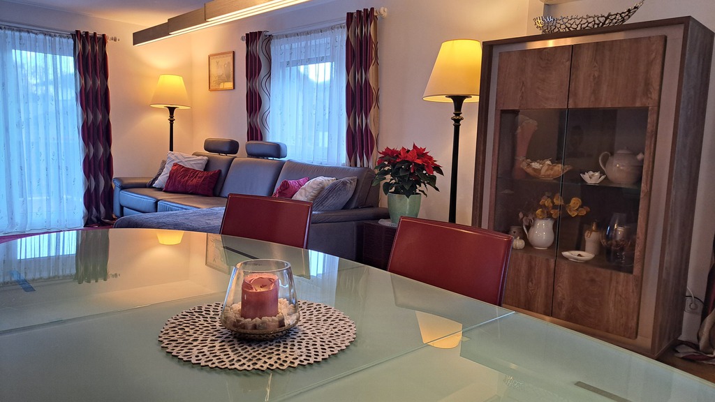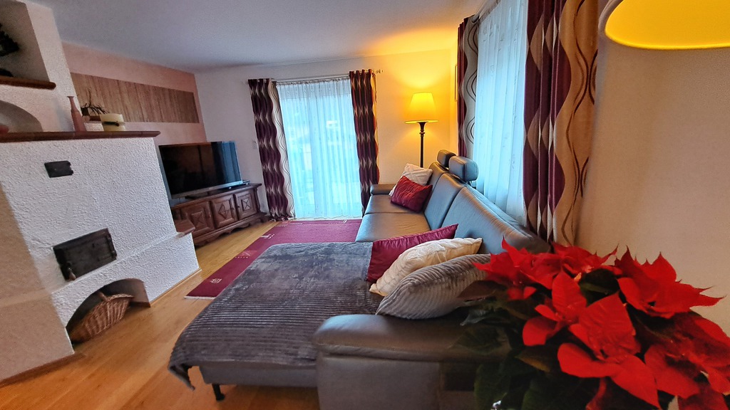 Die Ferienwohnung "Haus Salzburg" ist 130 m² groß und beherbergt in drei Doppelzimmern und auf einem Schlafsofa bis zu 7 Personen. Im Erdgeschoss gibt es ein WC, eine vollständig ausgestattete Küche (mit Mikrowelle, Glaskeramikkochfeld, Geschirrspülmaschine und Backofen), zwei Doppelzimmer und ein Bad mit Badewanne. In der unteren Etage liegen der Wohnbereich mit Schlafsofa, ein weiteres Doppelzimmer und ein Bad mit Dampfdusche. Die Ferienwohnung" Haus Salzburg" wartet außerdem mit einem WLAN-Internetzugang, einer hervorragenden Schalldämmung, einem Kamin, einer großen Terrasse und einem kostenlosen Parkplatz auf.